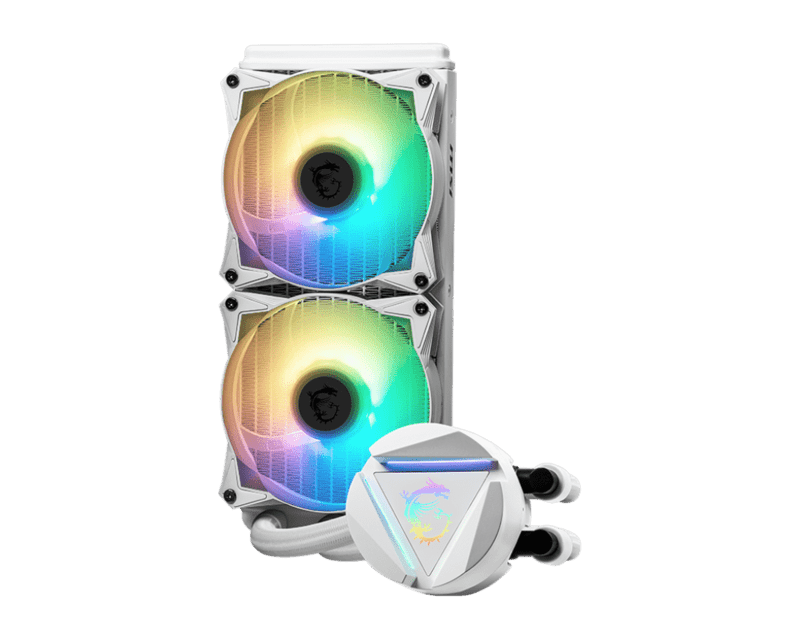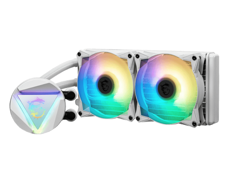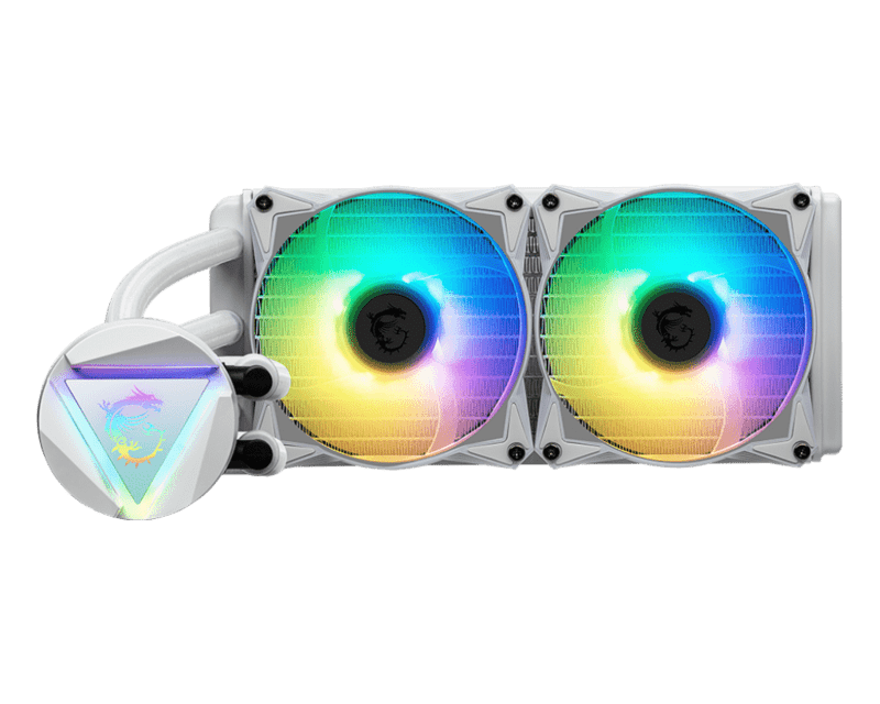 MSI MAG Core Liquid 240R V2 White AIO Liquid CPU Cooler, 240mm Radiator, Dual 120mm PWN Fans, ARGB lighting controled by software LGA 1700 Ready / AM5 Compatible
